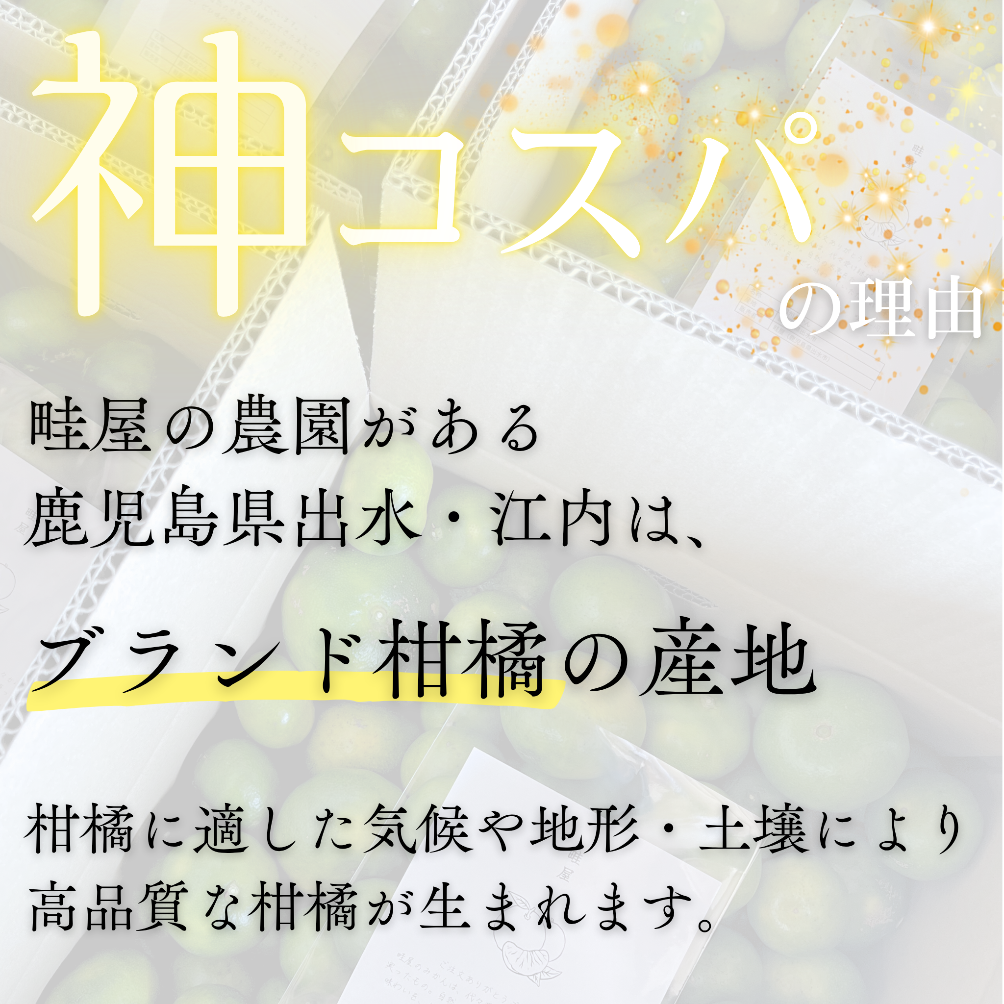 鹿児島・出水の豊かな自然で育った温州みかん。定番のみかんとして昔から馴染みのある、甘みと酸味のバランスが良く手軽に楽しめる果物として人気です。時期を追うごとに味わいも変化していきますので、旬の味をおたのしみください。